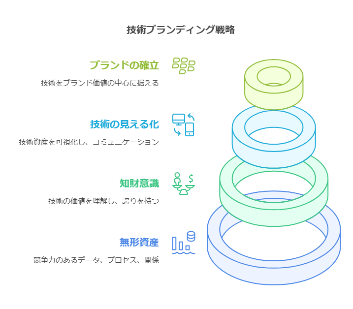 技術は単なる事業の裏方ではありません。技術そのものが企業の競争力となり、ブランド価値を高める要素として機能する時代が来ています。製品やサービスを支える技術、そこで培われたノウハウ、さらには企業文化そのものが、重要な無形資産(知財)となります。この知財を正しく認識し、戦略的に活用することこそが、技術ブランディングの本質です。